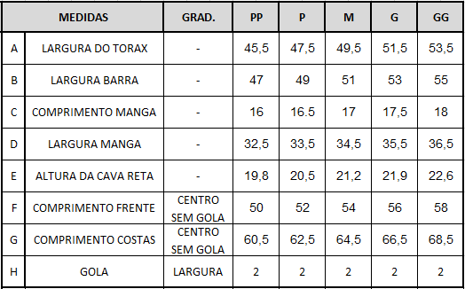 Tamanhos | PP, P, M, G, GG |