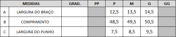 | Tamanhos | P, M, G |
